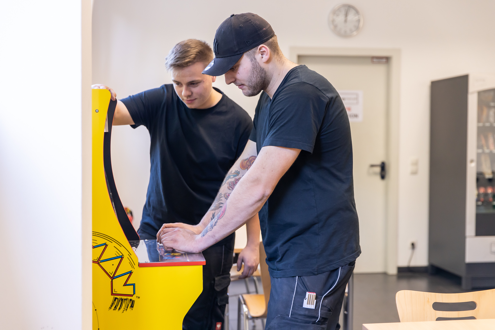 TOP modernes Arbeitsumfeld – neueste Anlagen, Hard- und Software, sowie Snackautomaten, PAC-MAN Spieleautomat und Profi-Tischkicker für Ihre Pausen